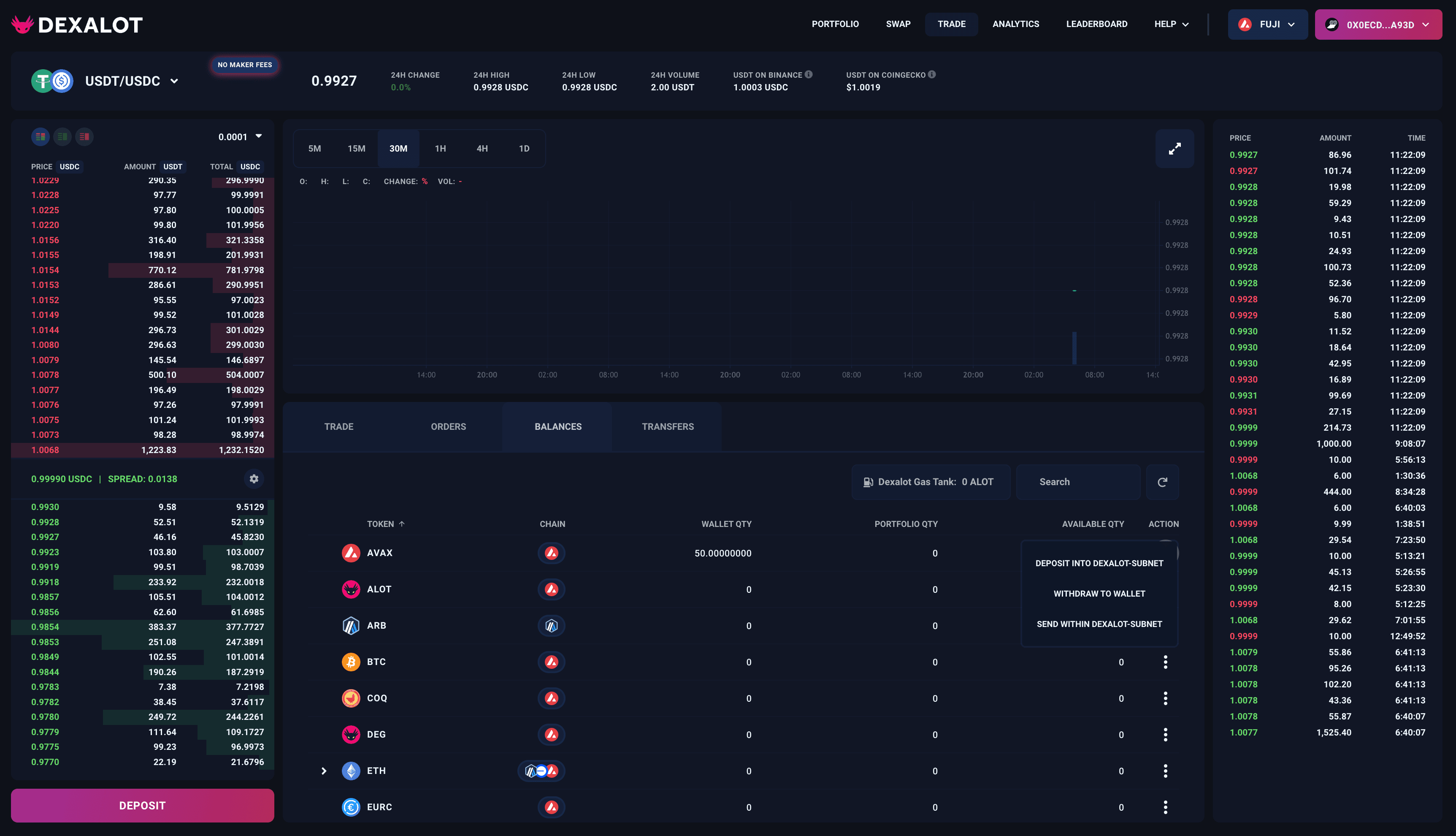 In this activity, we'll interact with our first Avalanche L1. The Dexalot Avalanche L1 aims to replicate the user experience of a centralized exchange (CEX) with greater decentralization and transparency. By using a Avalanche L1, Dexalot can offer cheaper transaction fees than other traditional decentralized exchanges while keeping the transparency that centralized exchanges lack.