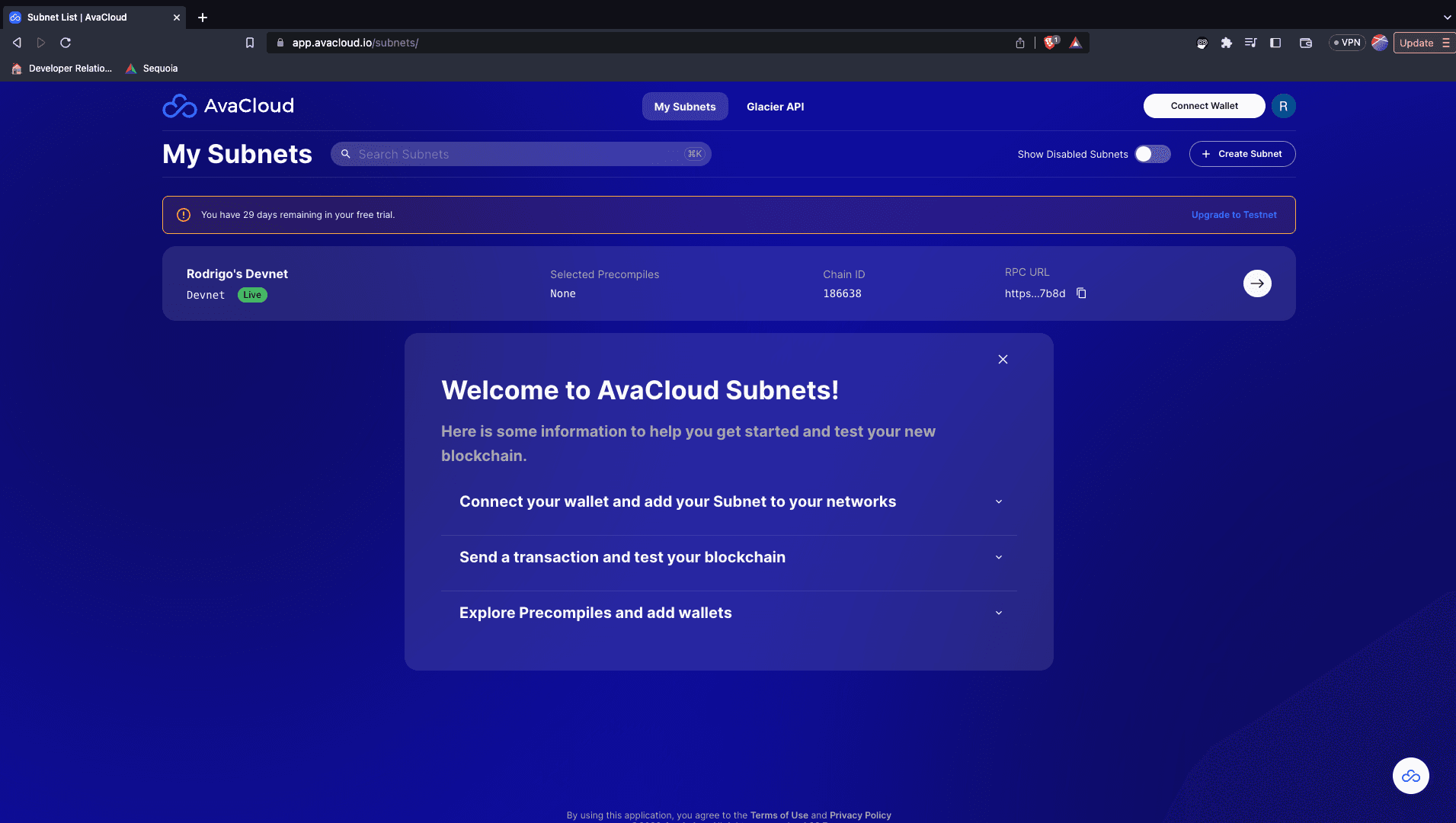 Make sure your wallet is connected to AvaCloud. Then, recall the following page from last time: