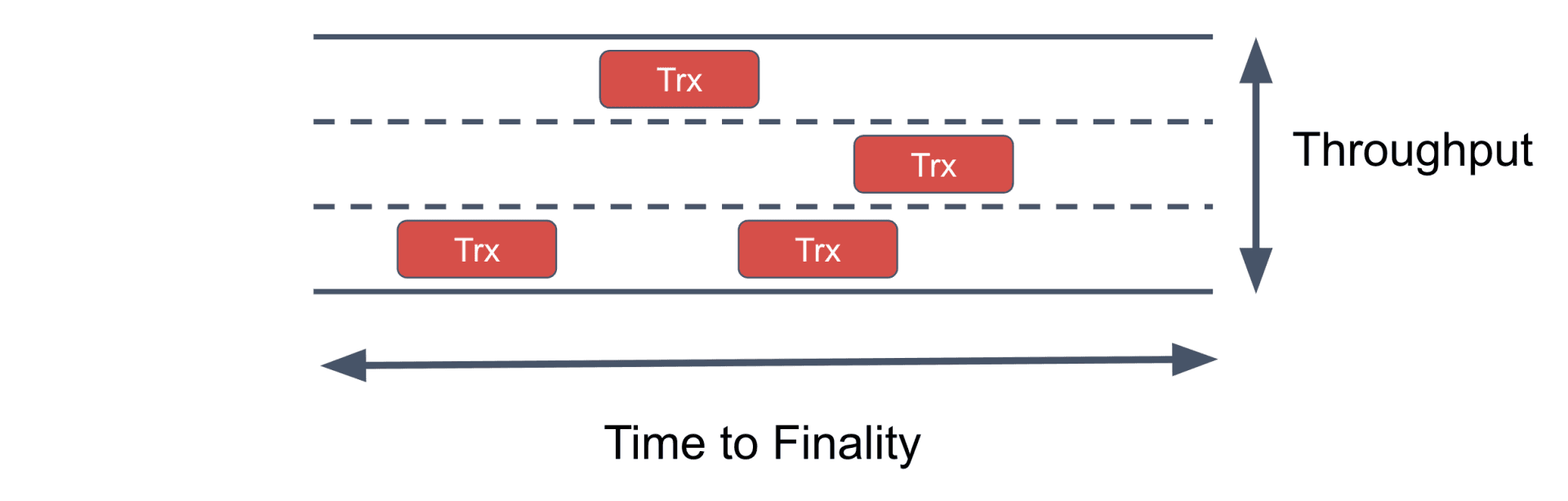 Having high transaction throughput is like having many lanes on the highway, meaning many cars (transactions) can use it at the same time. When building blockchain systems, we want to achieve high throughput.